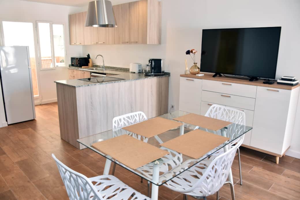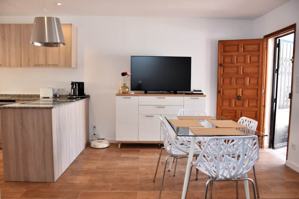 Casa reformada con piscina comunitaria a 200m. Aire acondicionado frío y calor, un dormitorio y sofá cama en el salón, cocina totalmente equipada, lavavajillas y lavadora. Televisión, internet wifi. Baño con ducha, comedor, amplia terraza exterior. Varios bares y restaurantes a 1 minuto de nuestro alojamiento. El centro comercial Habaneras, Carrefour Lidl, está a 5 minutos en coche. NO proporcionamos toallas de baño/ducha. Camas hechas a su llegada.